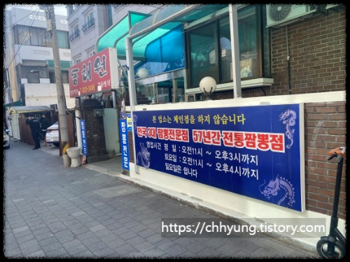 대전 유성구 궁동에 위치한 유성구 맛집이자 궁동 맛집인 '동해원'....보통 전국 몇 대 짬뽕전문점이라고 하면 이런 플랜카드 하나 정도는 걸려있어야 한다....ㅋㅋㅋ 근데 여기가 전국 5대 짬뽕 맞나....???? 이름만 똑같은거 아닌가....