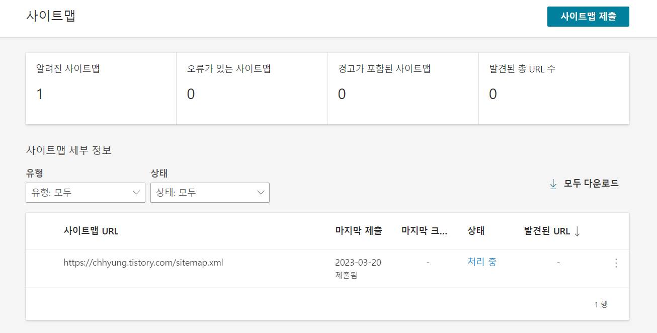 우측 상단의 '사이트맵 제출'을 click