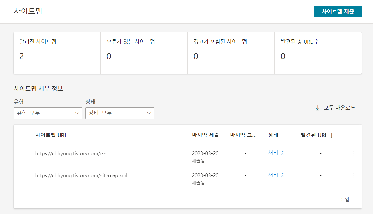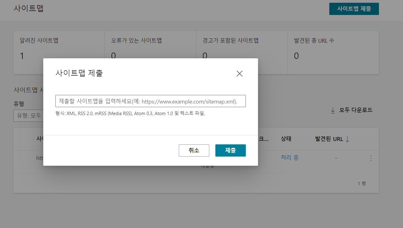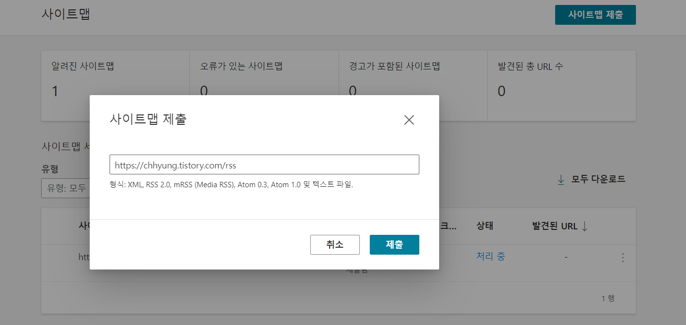 그럼 위 사진처럼 '처리중'라는 상태창이 발생... (plus) rss 제출...
