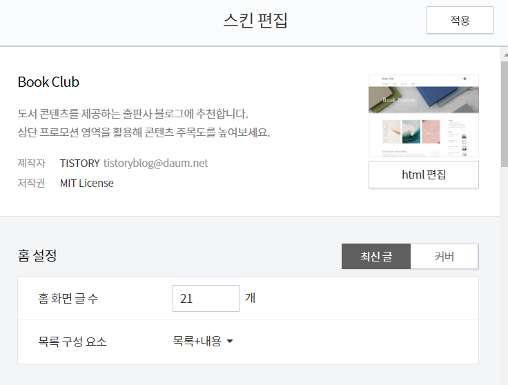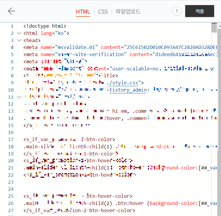 본인의 티스토리로 돌아라서 설정에서 스킨편집 -> html 편집을 click 해주세요 ~~~~