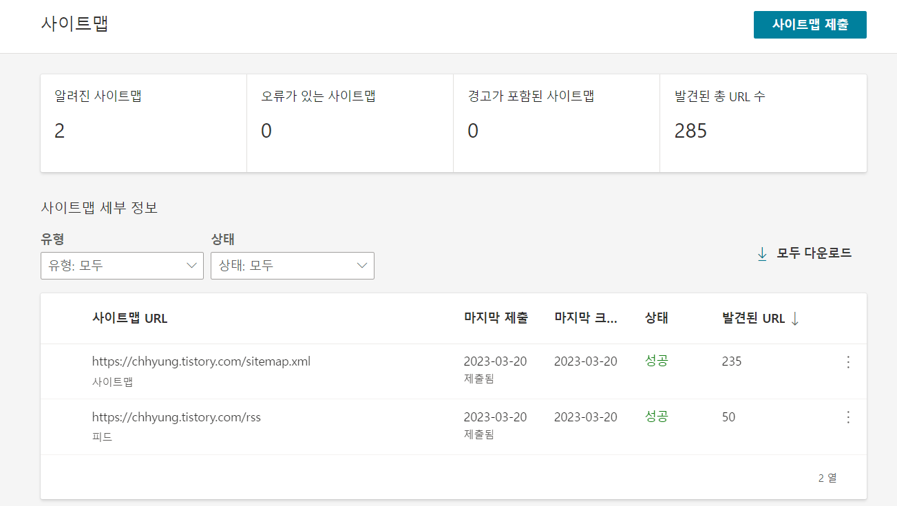 여기에서 xml이랑 rss의 발견된 URL 숫자가 다른 이유는 나도 모르겠음.. ㅜㅜ