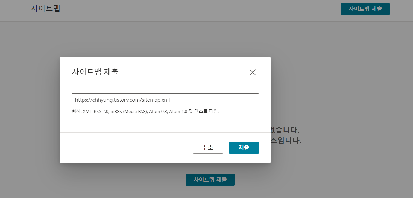 본인의 블로그 주소에 (본인 블로그주소)/sitemap.xml 기입 후 '제출' click !!!!