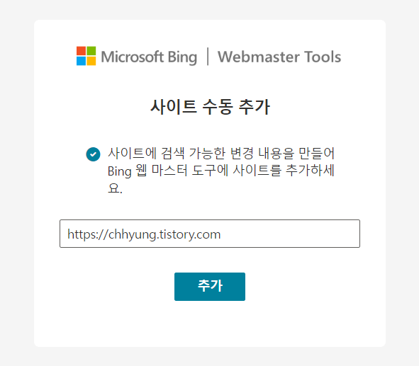 앞서 네이버와, 구글, zum에 나의 티스토리를 등록했고 오늘은 Microsoft Bing에 등록할 차례이다 !!!!