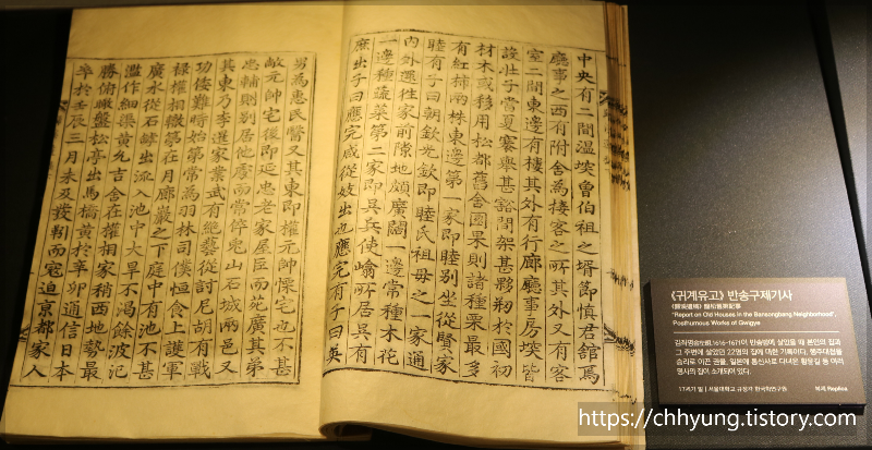 김좌명이란 분이 반송방에 살았을 때 본인의 집과 그 주변에 살았던 22명의 집에 대한 기록이다. 행주대첩을 승리로 이끈 권율, 일본에 통신사로 다녀온 황윤길 등 여러 명사의 집이 소개되어 있다.