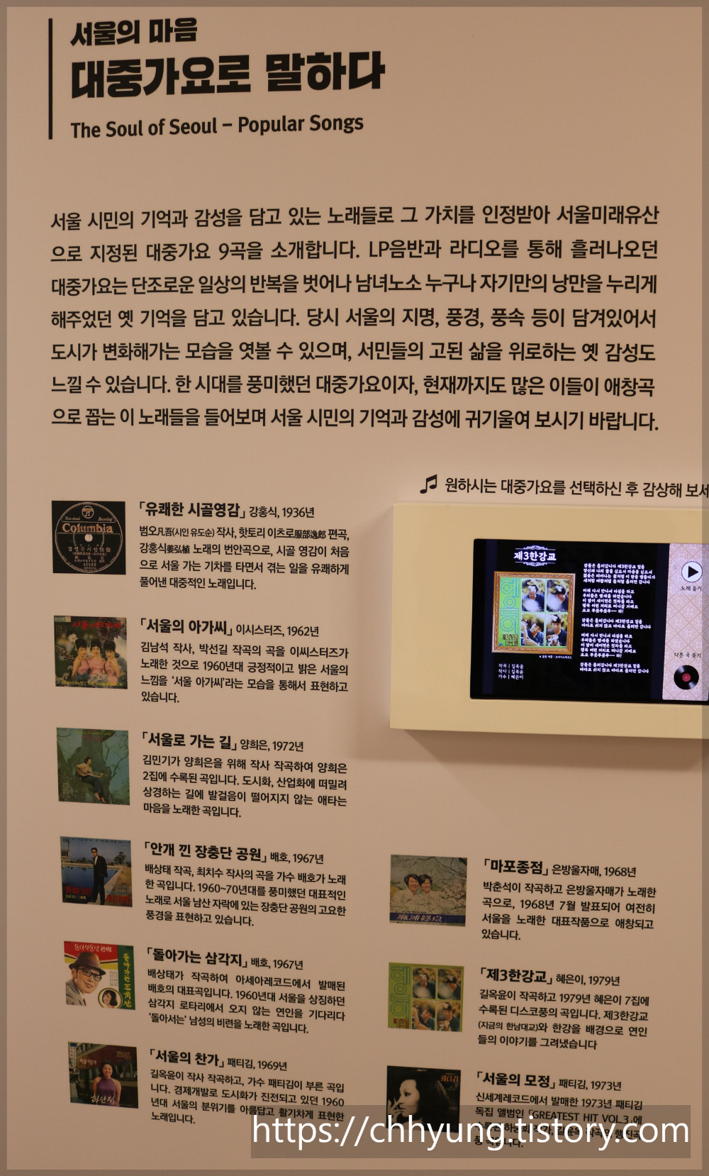 그나마 아는건 양희은의 '서울로 가는길'과 은방울자매의 '마포종점'이다.. ㅋㅋㅋ